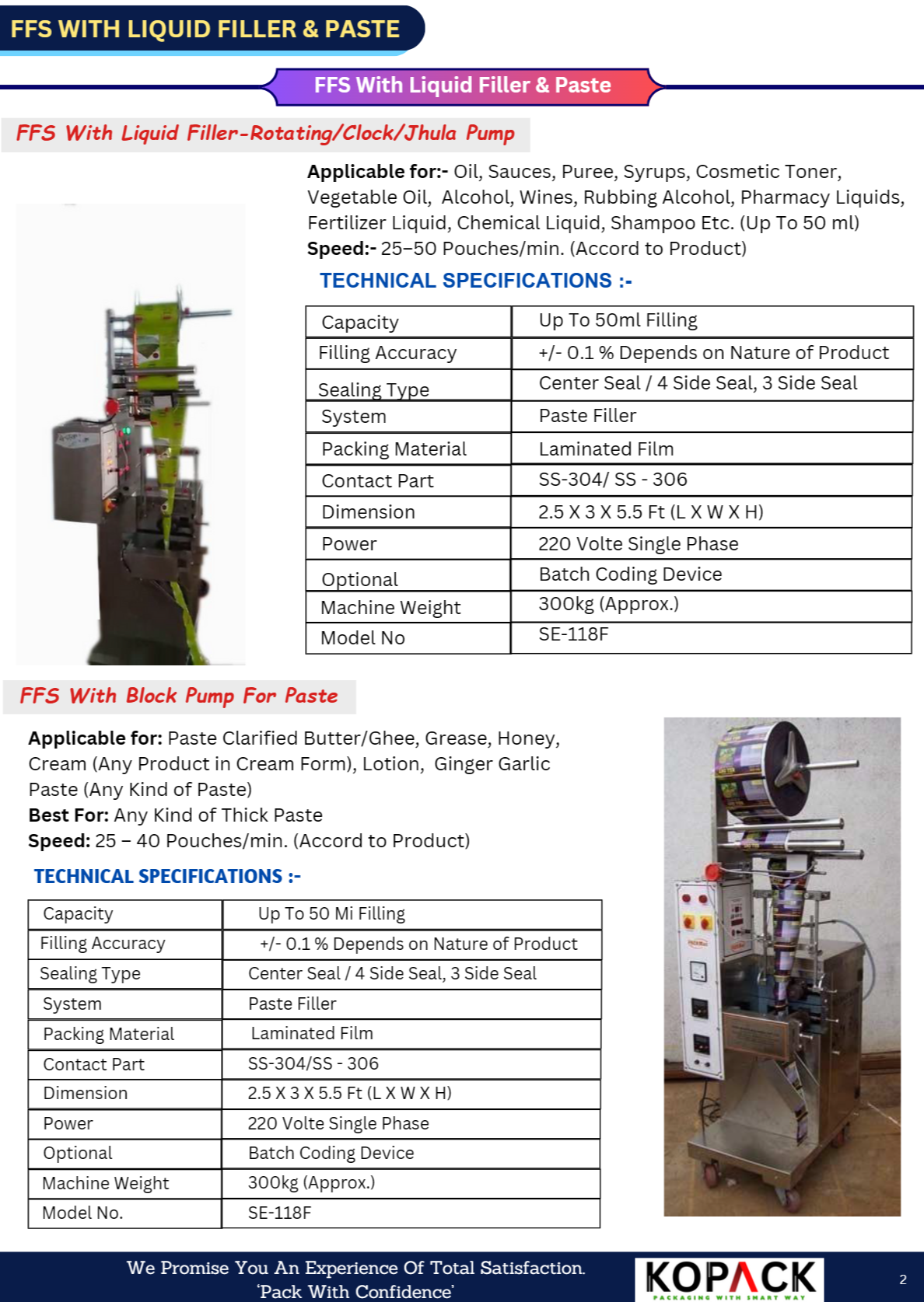 Kopack FFS with liquid filling machine is a highly efficient and automated packaging solution used for handling liquid products. These machines are designed to form packaging containers (pouches, sachets, cups, or bottles), fill them with liquid products, and seal them—all within a single system. This makes them ideal for industries like food and beverage, pharmaceuticals, cosmetics, and chemicals.