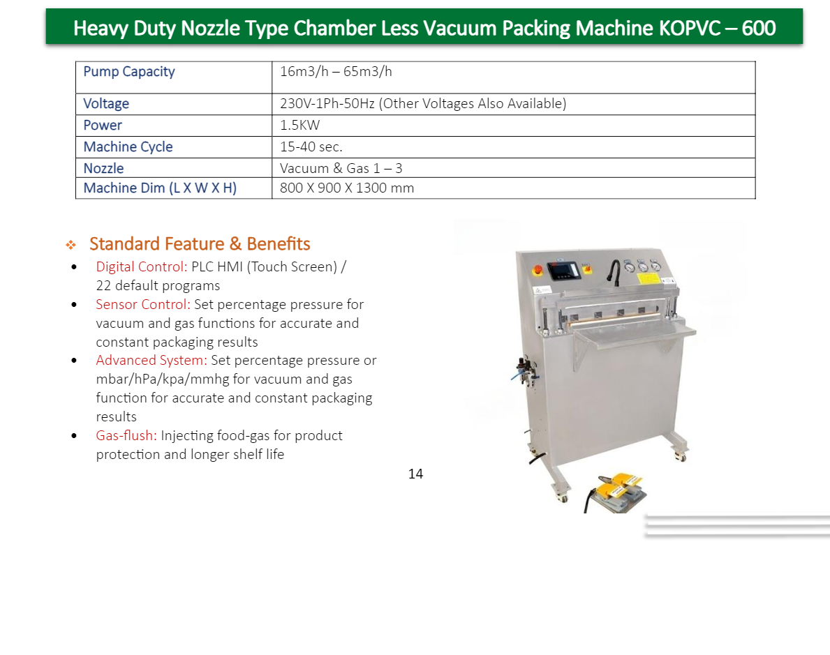 Nozzle Type Chamber Less Vacuum Packing Machine KOPVC-1200